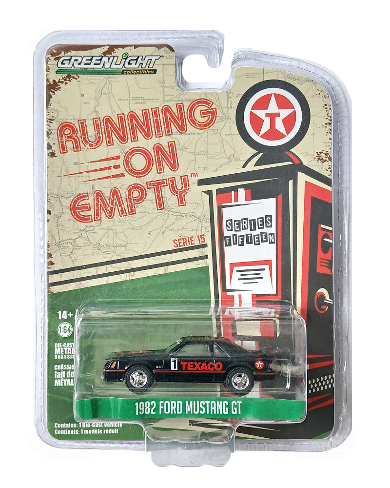 EXCLUSIVES Greenlight Collectibles Running On Empty Texaco 1982 Ford Mustang GT - Black