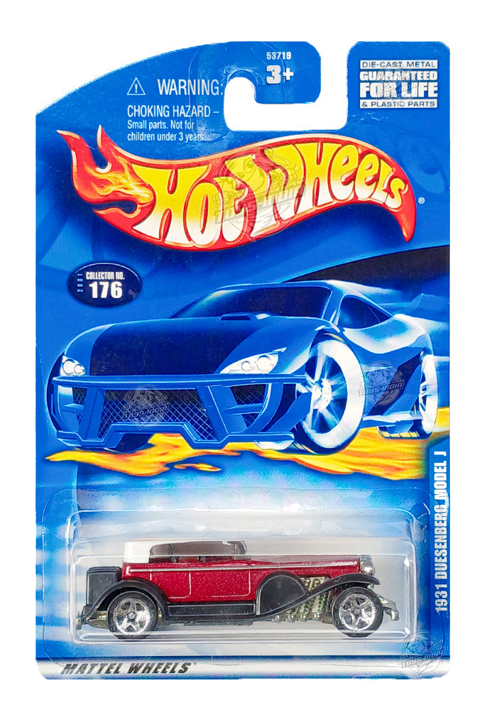EXCLUSIVES Hot Wheels 1931 Duesenberg Model J - Maroon / Black - 2000 Card (With Protector Case)