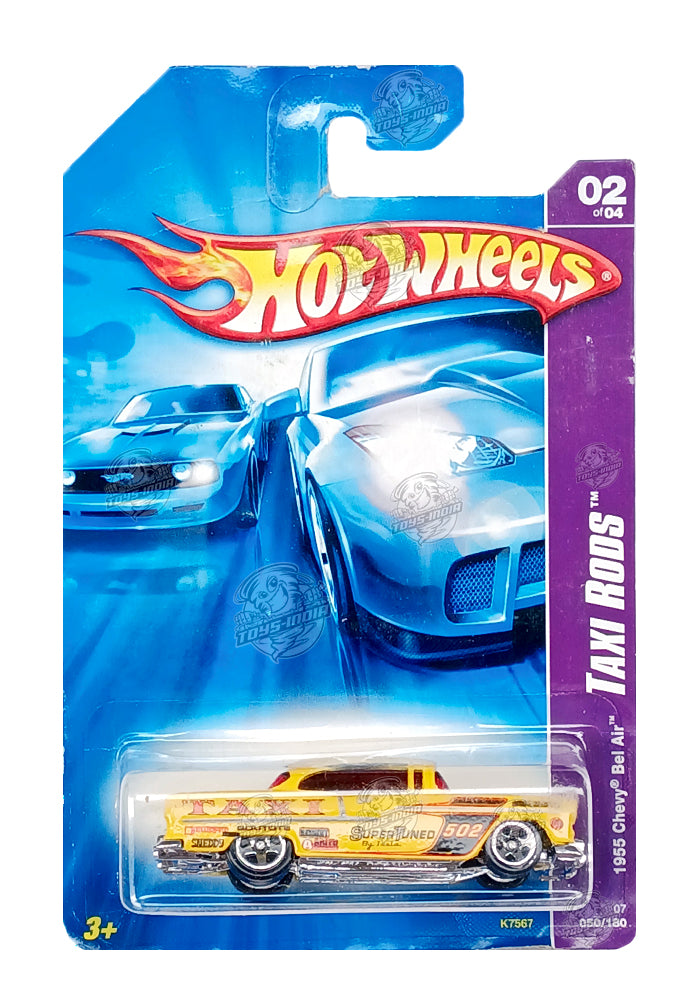 EXCLUSIVES Hot Wheels 1955 Chevy Bel Air - Yellow - 2006 Card (With Protector Case)