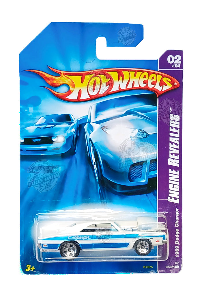 EXCLUSIVES Hot Wheels 1969 Dodge Charger - White / Blue - 2006 Card (With Protector Case)
