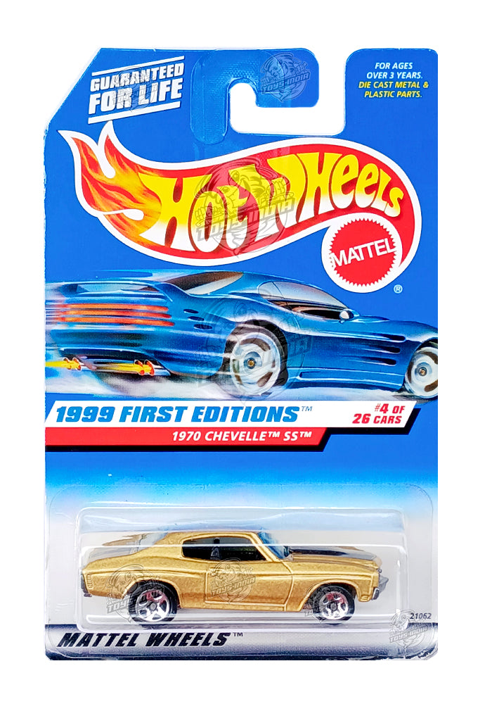 EXCLUSIVES Hot Wheels 1999 First Editions 1970 Chevelle SS - Golden / Black - 1998 Card (With Protector Case)