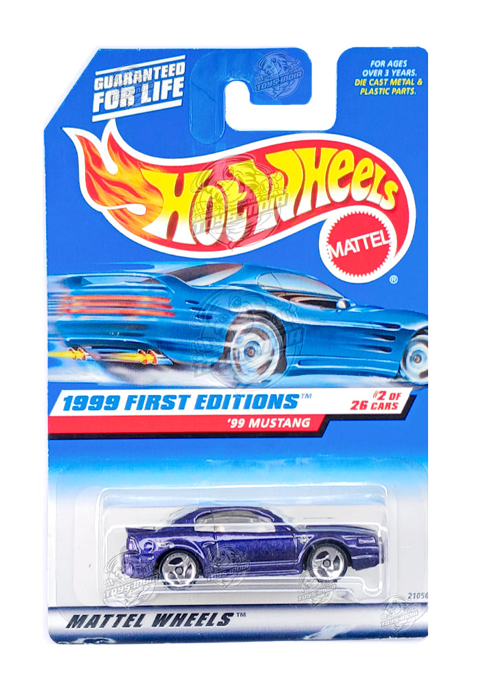 EXCLUSIVES Hot Wheels 1999 First Editions '99 Mustang - Purple - 1998 Card (With Protector Case)