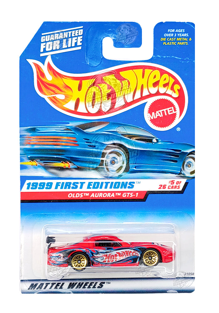 EXCLUSIVES Hot Wheels 1999 First Editions Olds Aurora GTS-1 - Red - 1998 Card (Creased Card / Car in Excellent Condition) (With Protector Case)