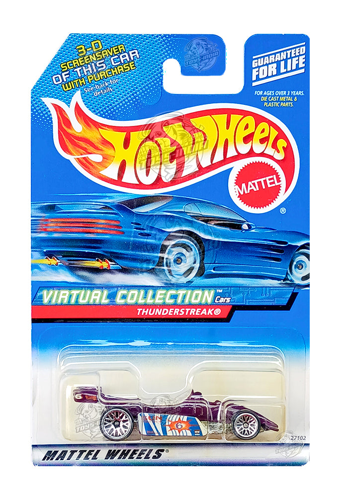 EXCLUSIVES Hot Wheels 1999 Virtual Collection Thunderstreak - Purple - 1999 Card (With Protector Case)