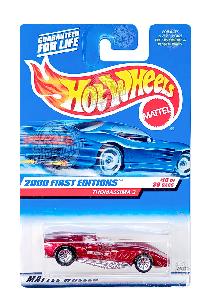 EXCLUSIVES Hot Wheels 2000 First Editions Thomassima 3 - Red / Silver - 1999 Card (With Protector Case)