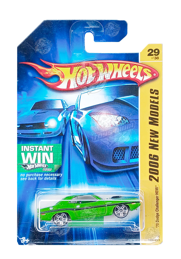 EXCLUSIVES Hot Wheels 2006 New Models '70 Dodge Challenger HEMI - Green - 2006 Card (With Protector Case)