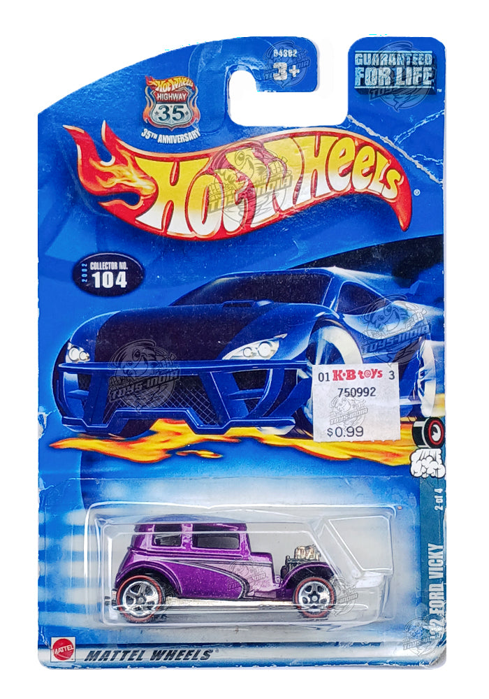 EXCLUSIVES Hot Wheels '32 Ford Vicky - Purple - 2002 Card (Creased Card / Car in Excellent Condition) (With Protector Case)