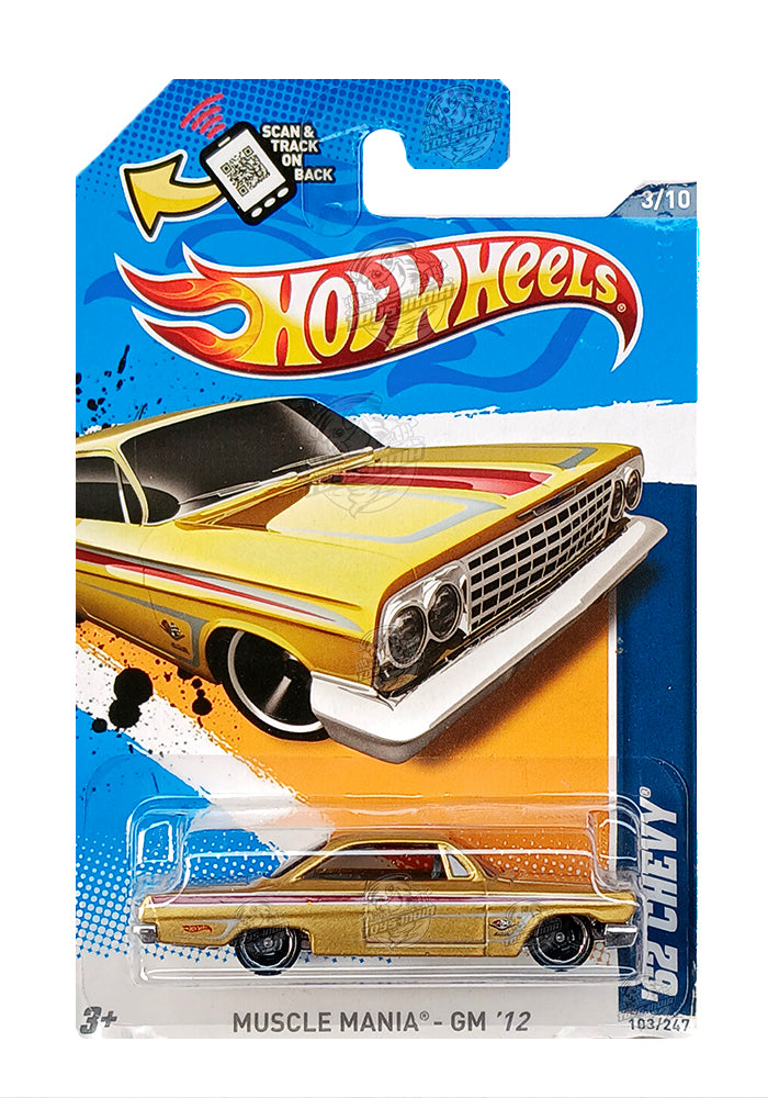EXCLUSIVES Hot Wheels '62 Chevy - Golden - 2011 Card (With Protector Case)
