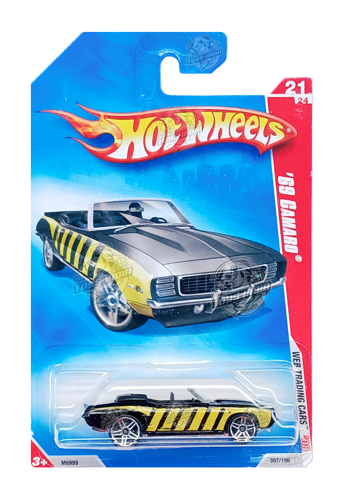 EXCLUSIVES Hot Wheels '69 Camaro - Black / Yellow - 2008 Card (With Protector Case)