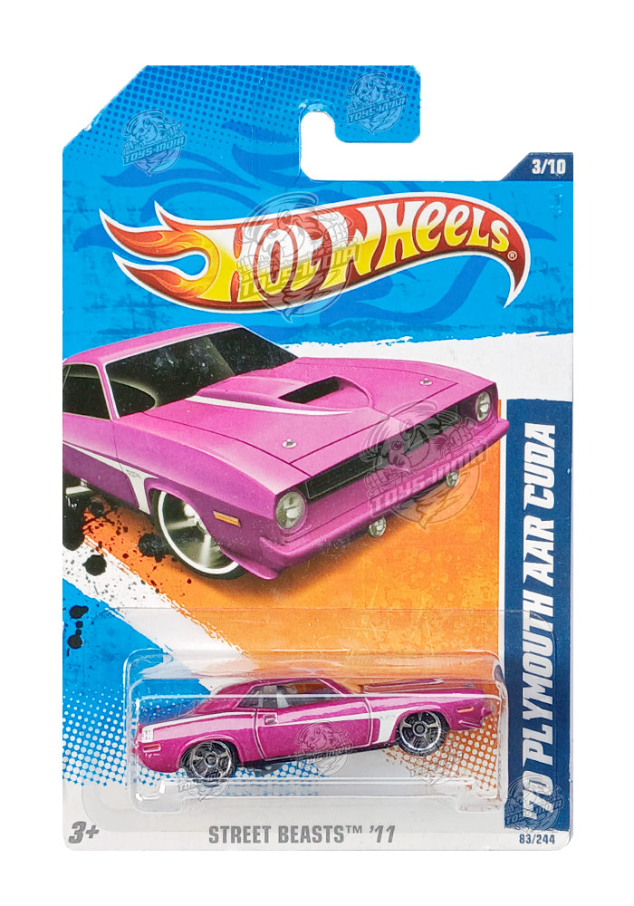 EXCLUSIVES Hot Wheels '70 Plymouth Aar Cuda - Purple / White - 2010 Card (With Protector Case)