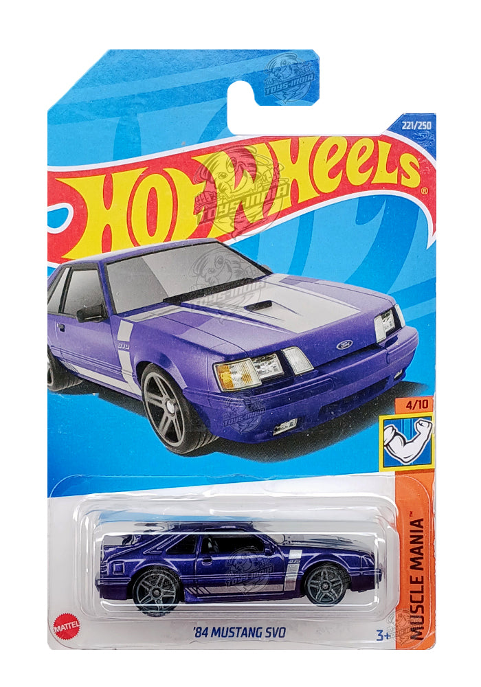 EXCLUSIVES Hot Wheels '84 Mustang SVO - Purple - 2021 Card (With Protector Case)
