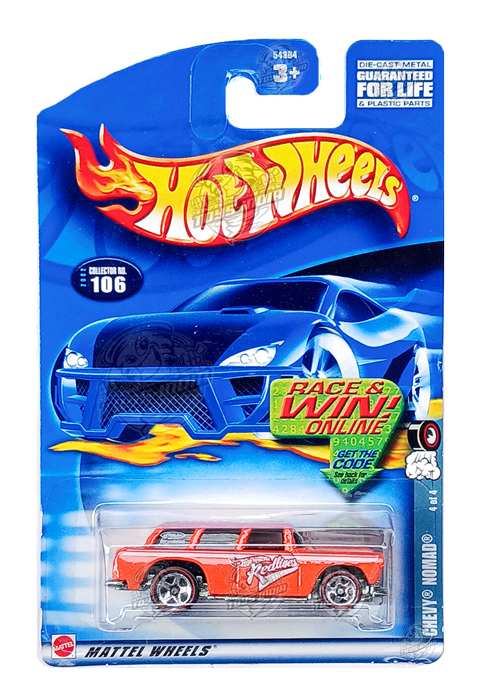 EXCLUSIVES Hot Wheels Chevy Nomad - Orange - 2001 Card (With Protector Case)