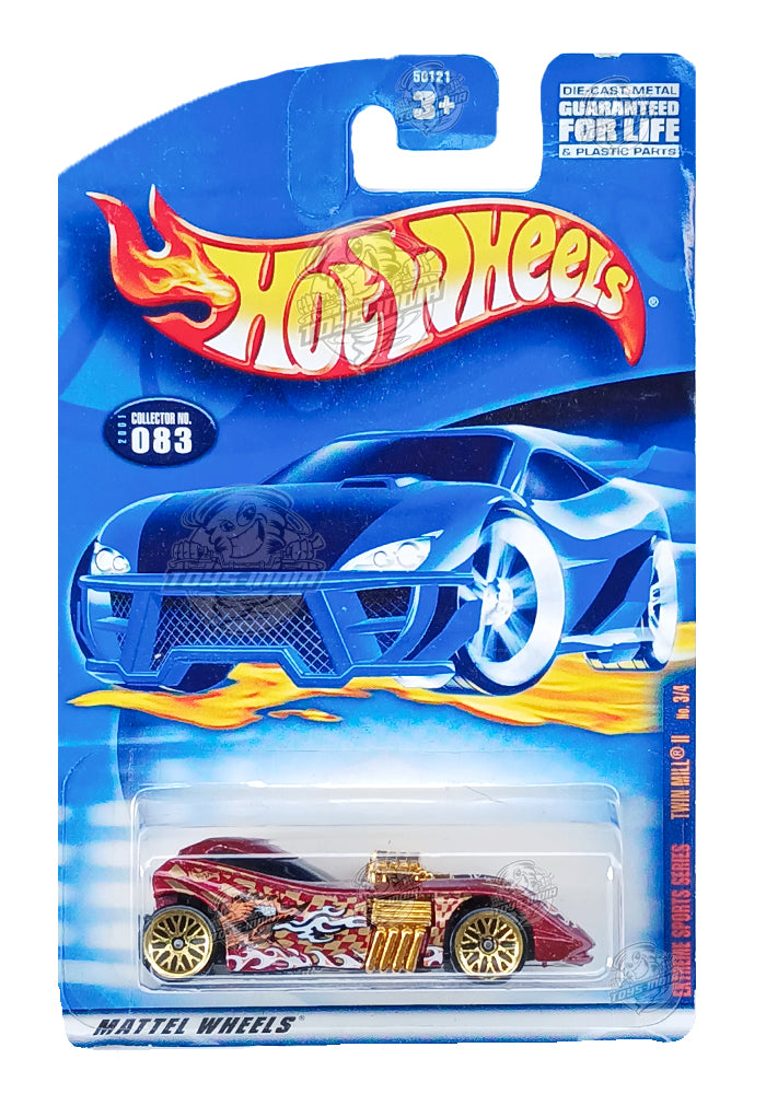 EXCLUSIVES Hot Wheels Extreme Sports Series Twin Mill II - Red / Golden - 2000 Card (Creased Card / Car in Excellent Condition) (With Protector Case)