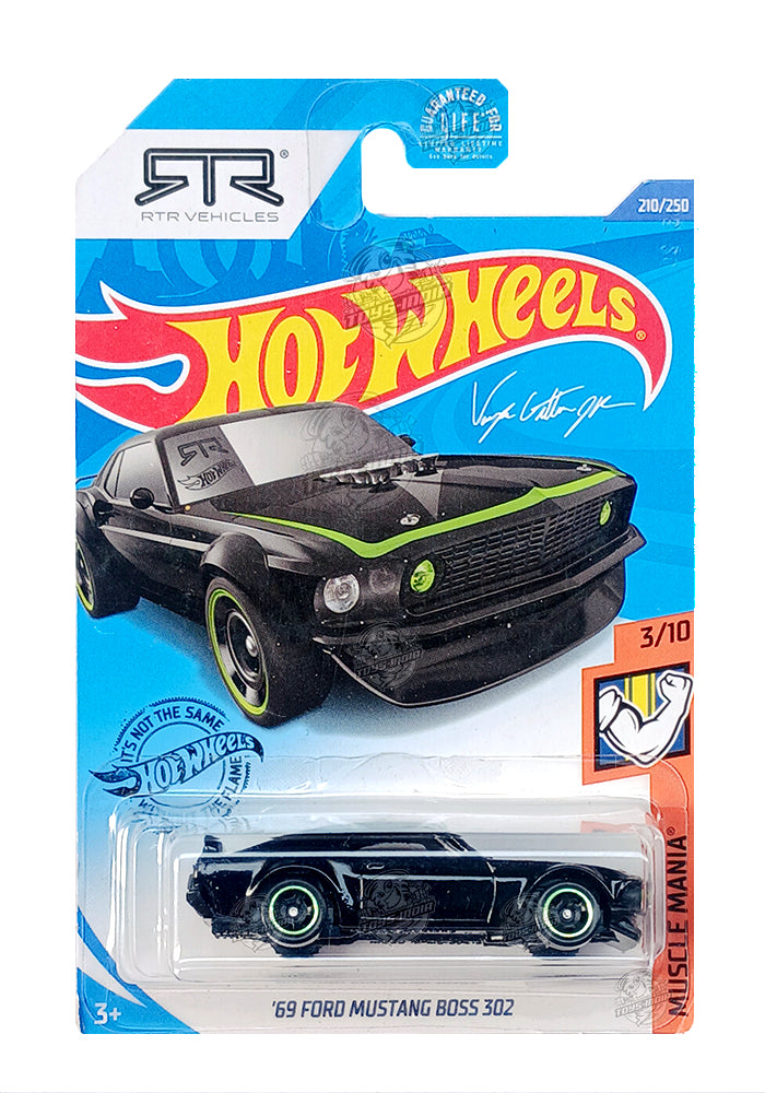 EXCLUSIVES Hot Wheels '69 Ford Mustang Boss 302 - Black - 2017 Card (With Protector Case)