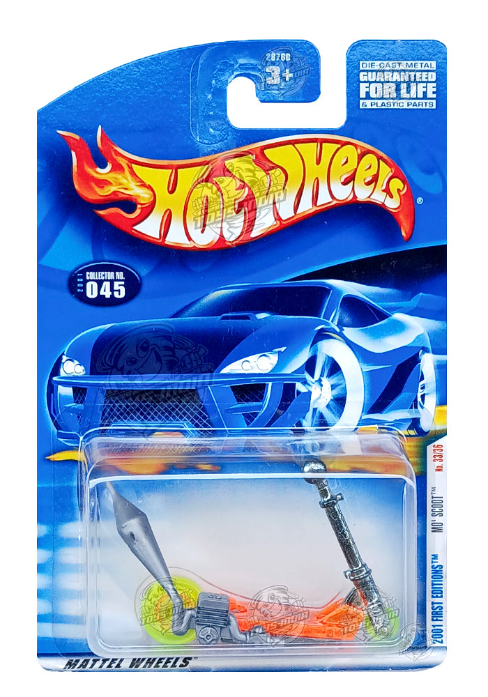 EXCLUSIVES Hot Wheels Mo Scoot - Orange / Silver - 2000 Card (With Protector Case)