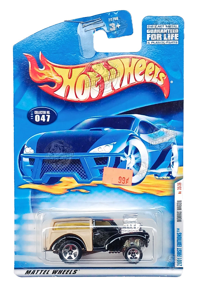 EXCLUSIVES Hot Wheels Morris Wagon - Black / Beige - 2000 Card (Card Damage / Car in Excellent Condition) (With Protector Case)