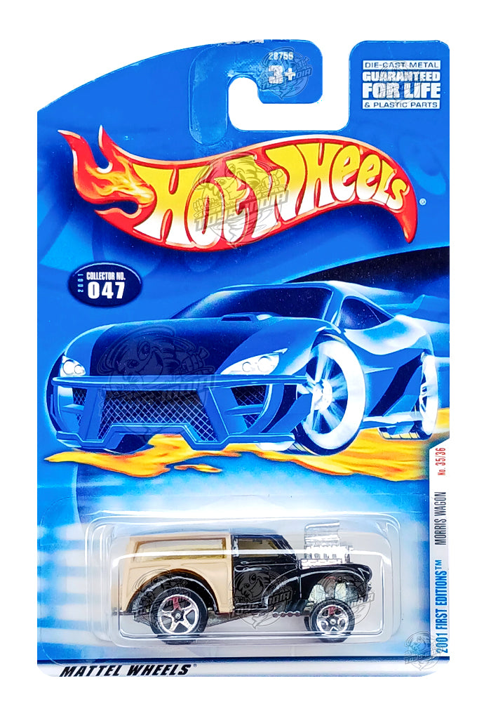 EXCLUSIVES Hot Wheels Morris Wagon - Black / Beige - 2000 Card (With Protector Case)