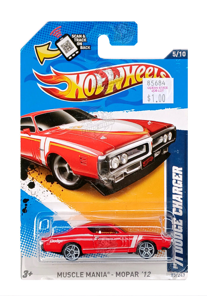 EXCLUSIVES Hot Wheels Muscle Mania '71 Dodge Charger - Red - 2011 Card (With Protector Case)