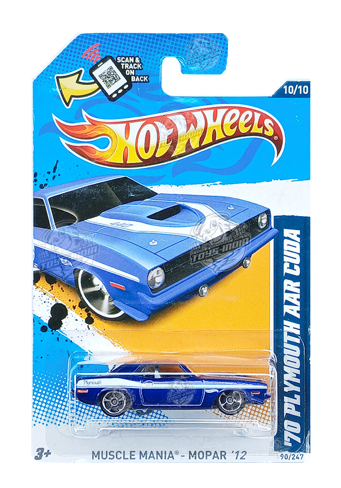EXCLUSIVES Hot Wheels Muscle Mania Mopar '70 Plymouth AAR Cuda - Blue - 2011 Card (With Protector Case)