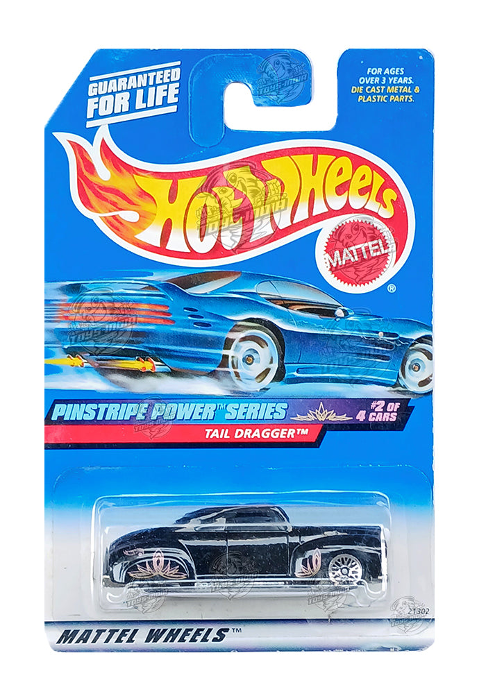 EXCLUSIVES Hot Wheels Pinstripe Power Series Tail Dragger - Black - 1998 Card (Blister Damage / Car in Excellent Condition) (With Protector Case)