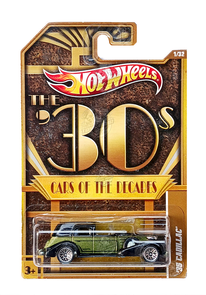EXCLUSIVES Hot Wheels Premium The 30's Cars of the Decades 35 Cadillac - Green / Black - 2011 Card (With Protector Case)