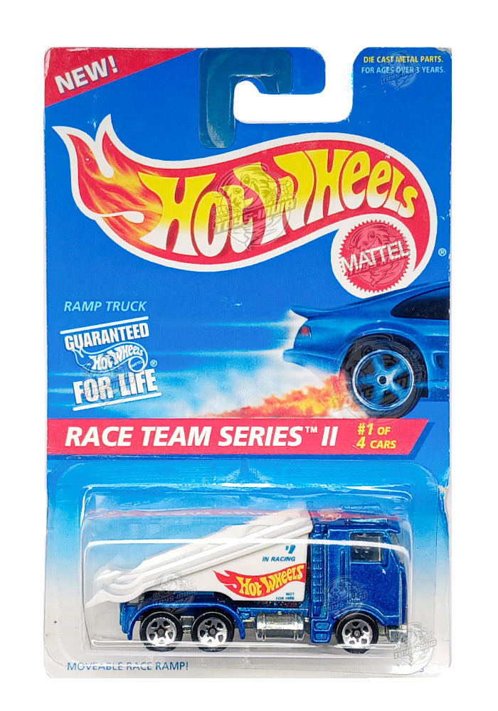 EXCLUSIVES Hot Wheels Race Team Series II Ramp Truck - Blue / White - 1995 Card (Card Damage / Car in Excellent Condition) (With Protector Case)