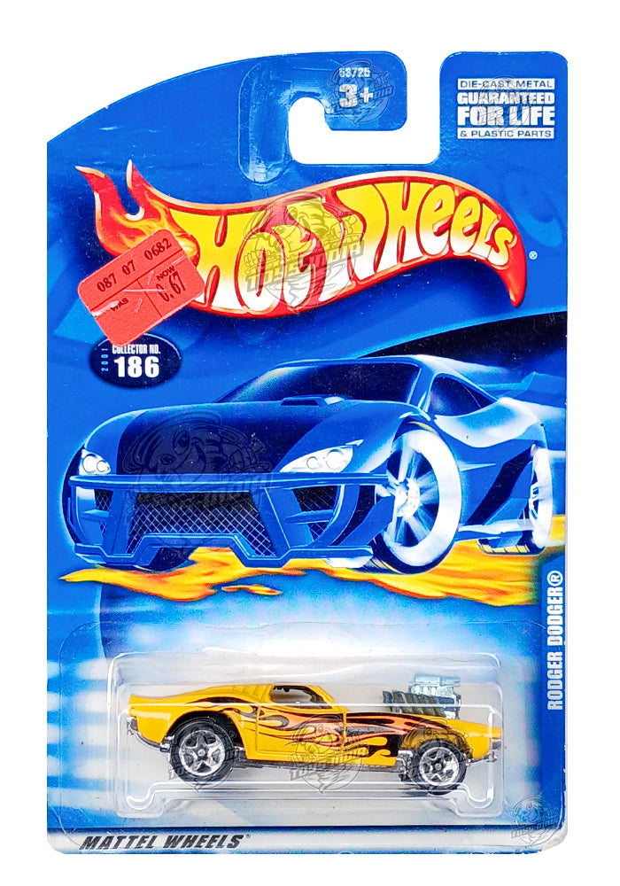 EXCLUSIVES Hot Wheels Rodger Dodger - Yellow - 2000 Card (With Protector Case)