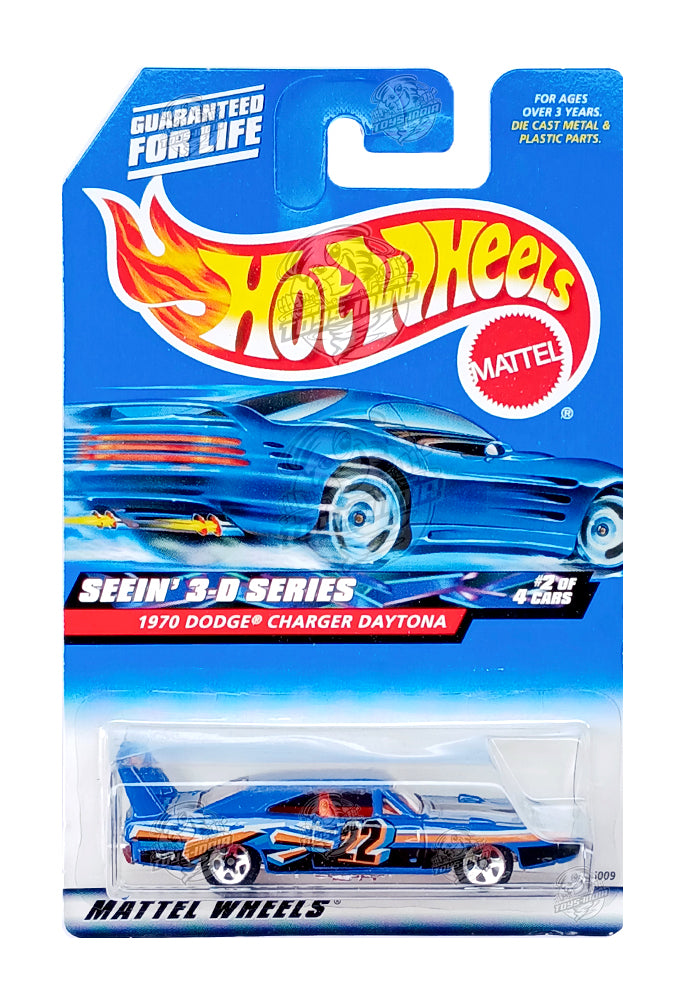 EXCLUSIVES Hot Wheels Seein' 3-D Series 1970 Dodge Charger Daytona - Blue - 1999 Card (With Protector Case)