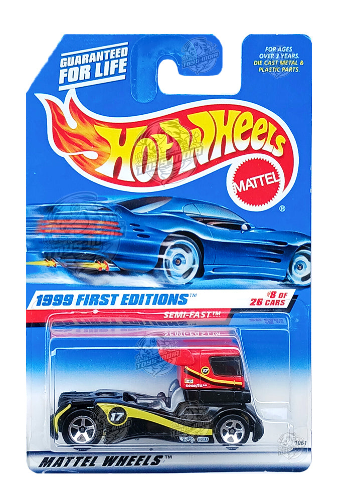 EXCLUSIVES Hot Wheels Semi-Fast - Black / Red - 1998 Card (With Protector Case)