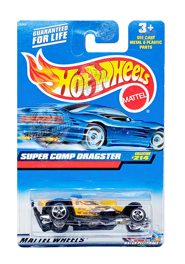 EXCLUSIVES Hot Wheels Super Comp Dragster - Yellow / Black - 1999 Card (With Protector Case)