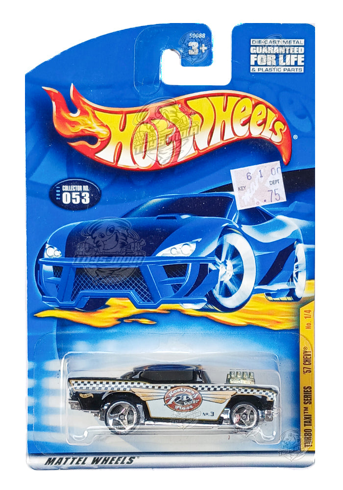 EXCLUSIVES Hot Wheels Turbo Taxi '57 Chevy - Black / White - 2000 Card (With Protector Case)