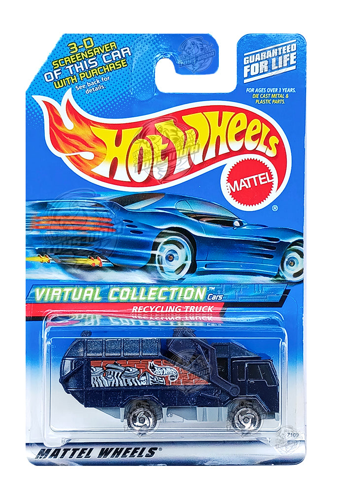 EXCLUSIVES Hot Wheels Virtual Collection Recycling Truck - Blue - 1999 Card (With Protector Case)