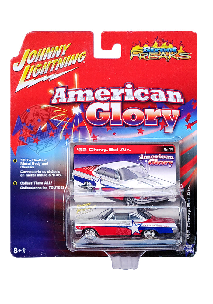 EXCLUSIVES Johnny Lightning American Glory '62 Chevy Bel Air - White / Red (Scale 1:64)