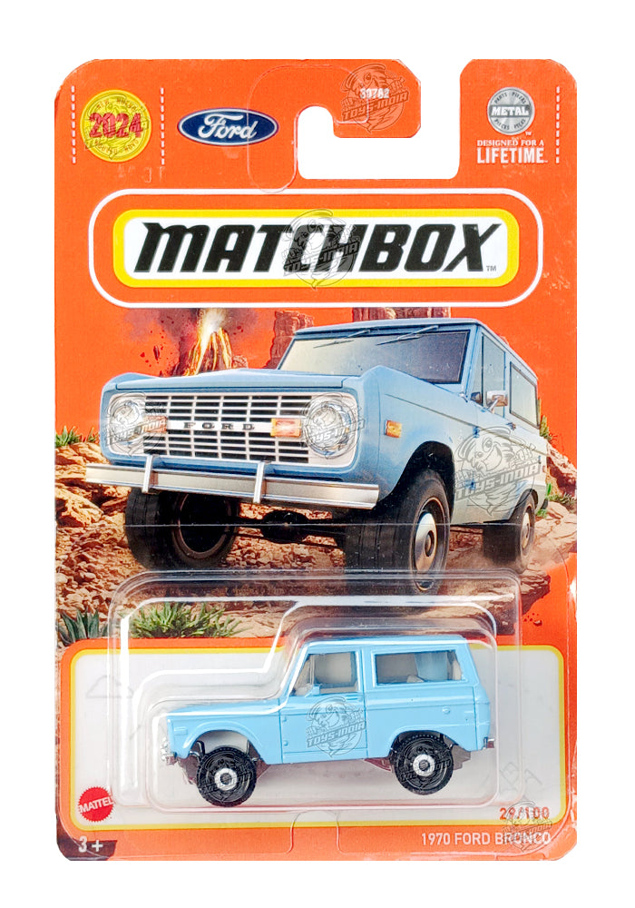 EXCLUSIVES Matchbox 1970 Ford Bronco- Blue - 2024 Card (With Protector Case)