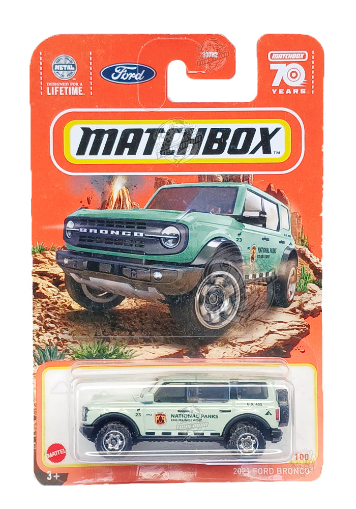 EXCLUSIVES Matchbox 2021 Ford Bronco - Green - 2022 Card (With Protector Case)