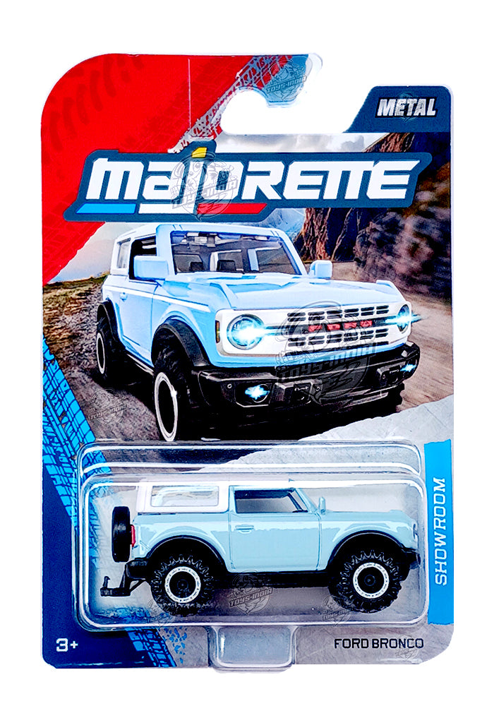 Majorette Showroom Cars Ford Bronco - Blue / White - 2025 Card (Moving Parts)