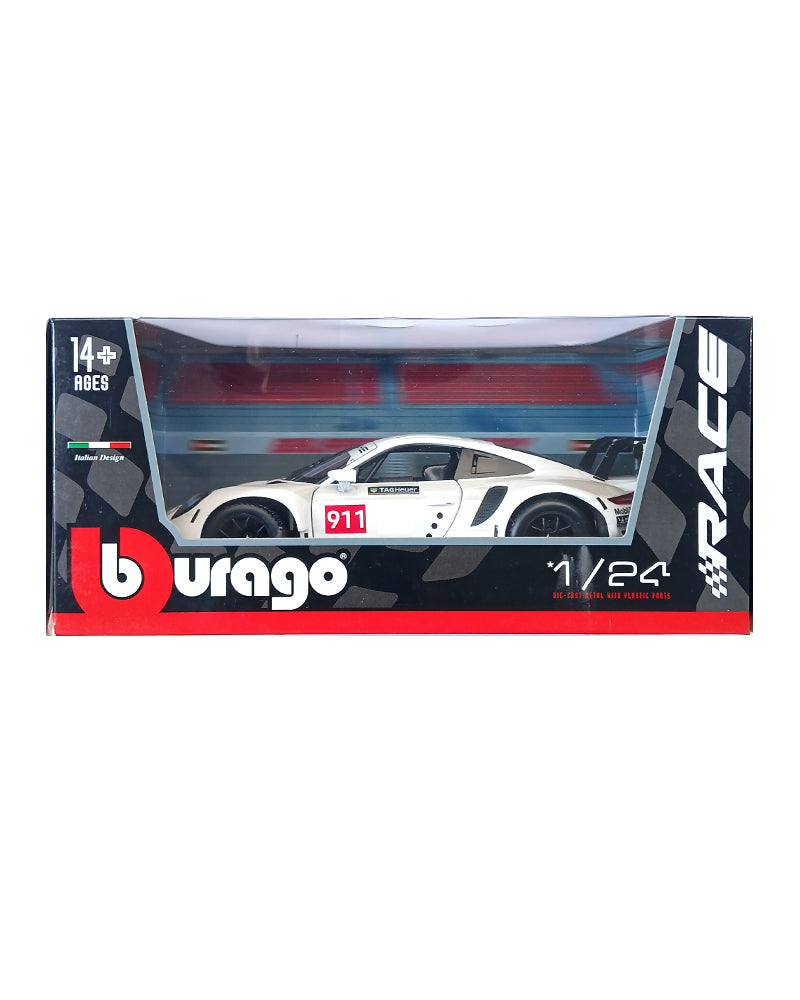 Burago Race Porsche 911 RSR - White / Red - 2024 (Scale 1:24)