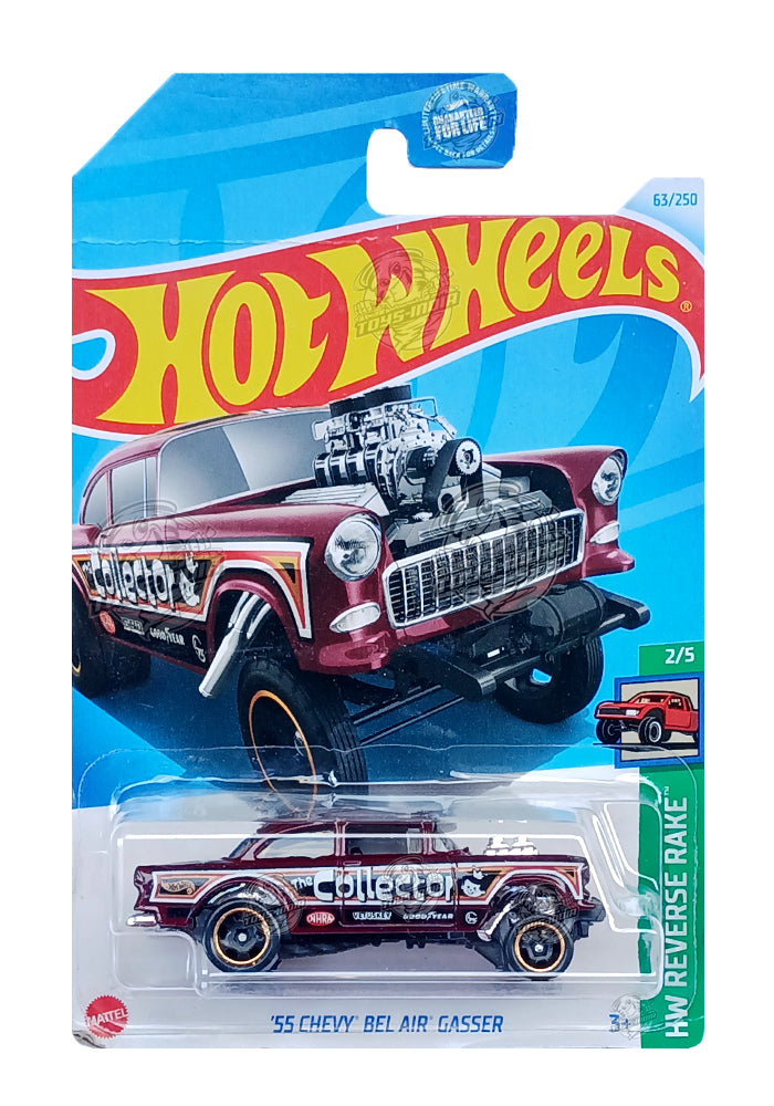 EXCLUSIVES Hot Wheels '55 Chevy Bel Air Gasser - Red / White - 2021 Card (Creased Card / Car in Excellent Condition) (With Protector Case)