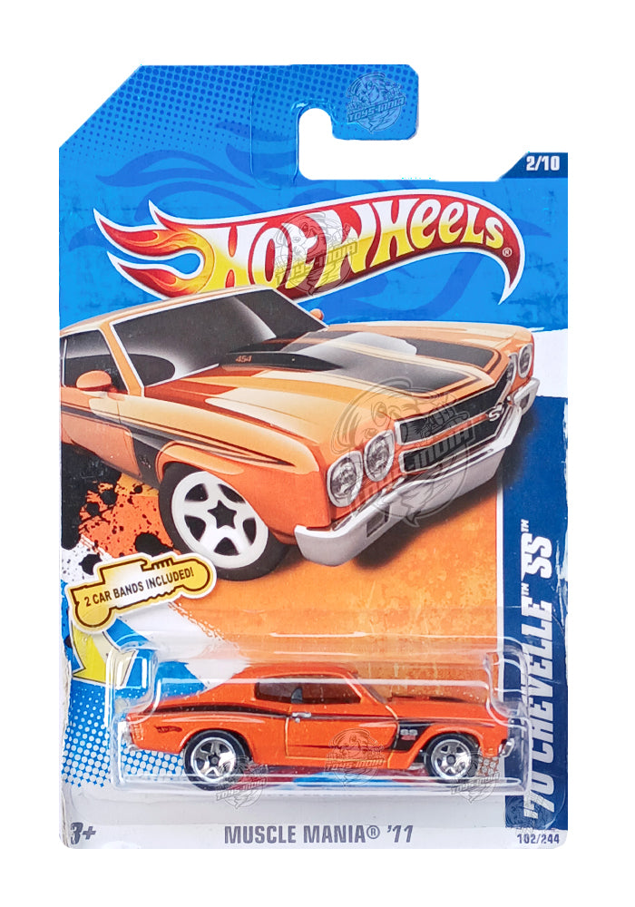 EXCLUSIVES Hot Wheels '70 Chevelle SS - Orange - 2010 Card (Creased Card / Car in Excellent Condition) (With Protector Case)