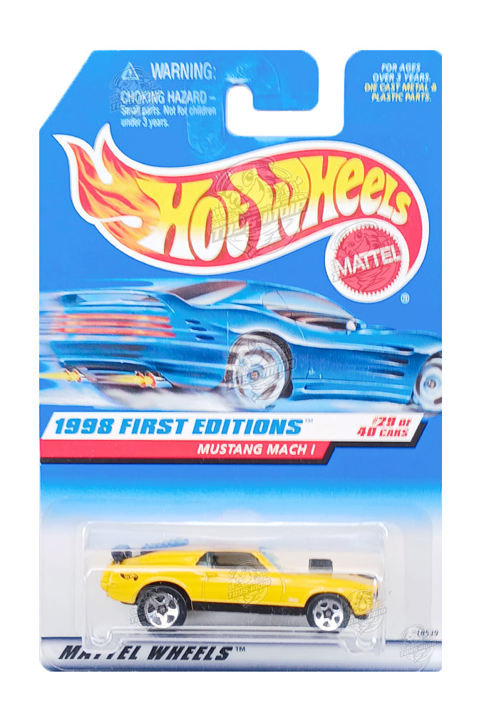 EXCLUSIVES Hot Wheels '70 Mustang Mach 1 - Yellow / Black - 1997 Card (With Protector Case)