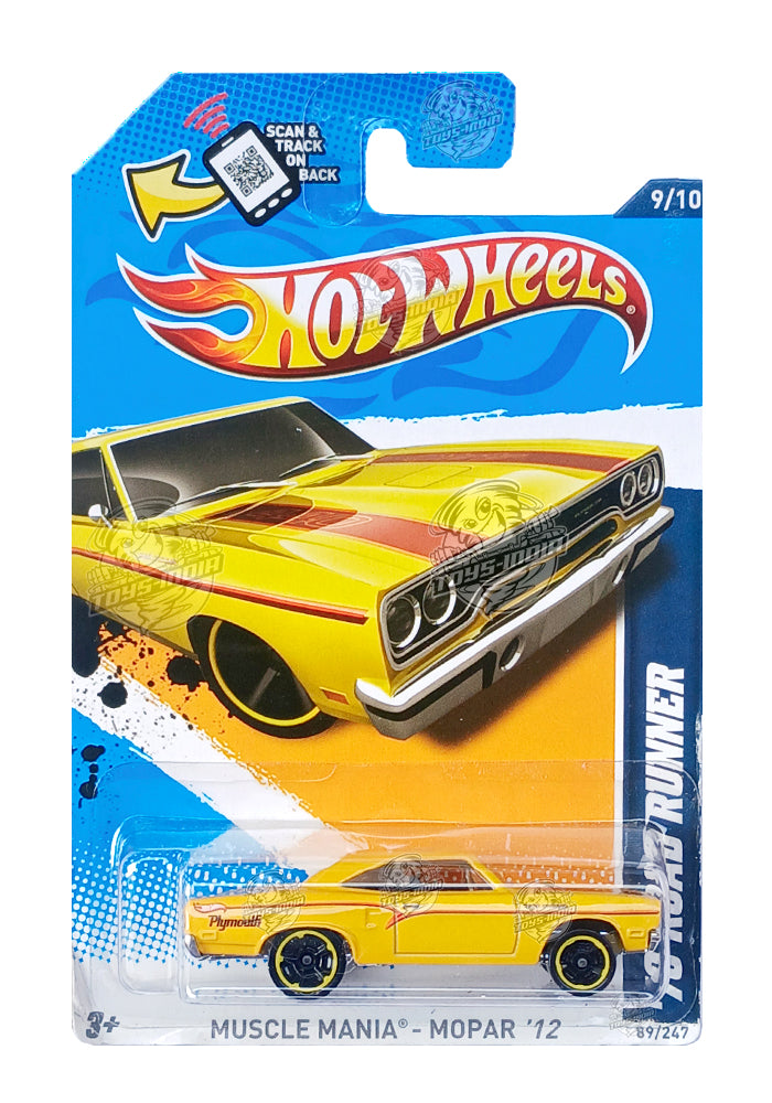 EXCLUSIVES Hot Wheels '70 Road Runner - Yellow - 2011 Card (With Protector Case)