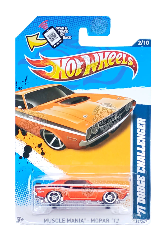 EXCLUSIVES Hot Wheels '71 Dodge Challenger - Orange / Black - 2011 Card (With Protector Case)