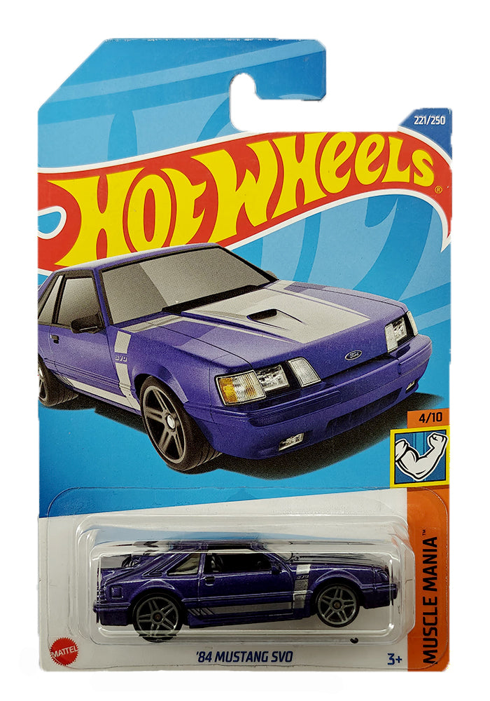 EXCLUSIVES Hot Wheels '84 Mustang SVO - Purple - 2021 Card (With Protector Case)