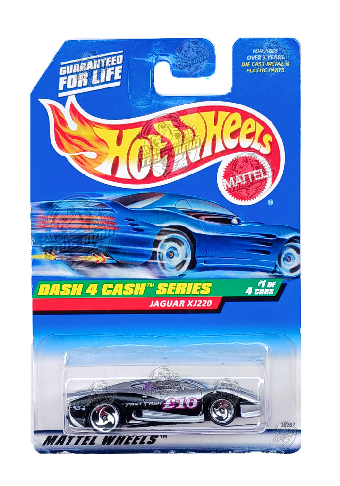 EXCLUSIVES Hot Wheels Dash 4 Cash Series Jaguar XJ220 - Silver / Black - 1997 Card (With Protector Case)