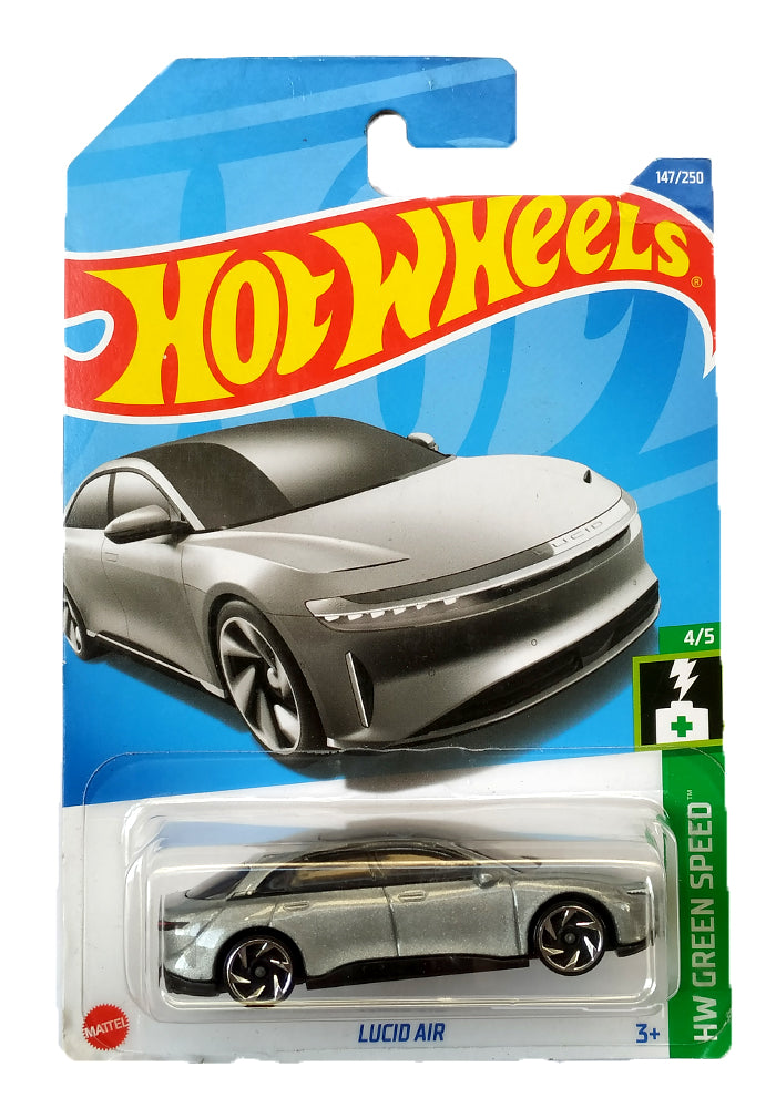 EXCLUSIVES Hot Wheels Lucid Air - Silver - 2021 Card (Slide Crease / Top) (With Protector Case)