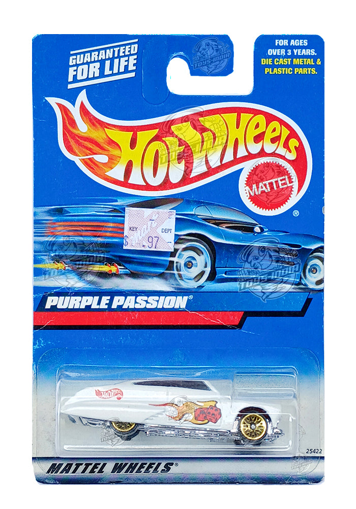 EXCLUSIVES Hot Wheels Purple Passion - White - 1999 Card (Creased Card / Car in Excellent Condition) (With Protector Case)