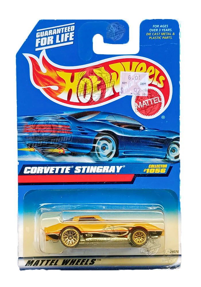 EXCLUSIVES Hot Wheels Tattoo Machine Series Corvette Stingray - Yellow / Black - 1998 Card (With Protector Case)