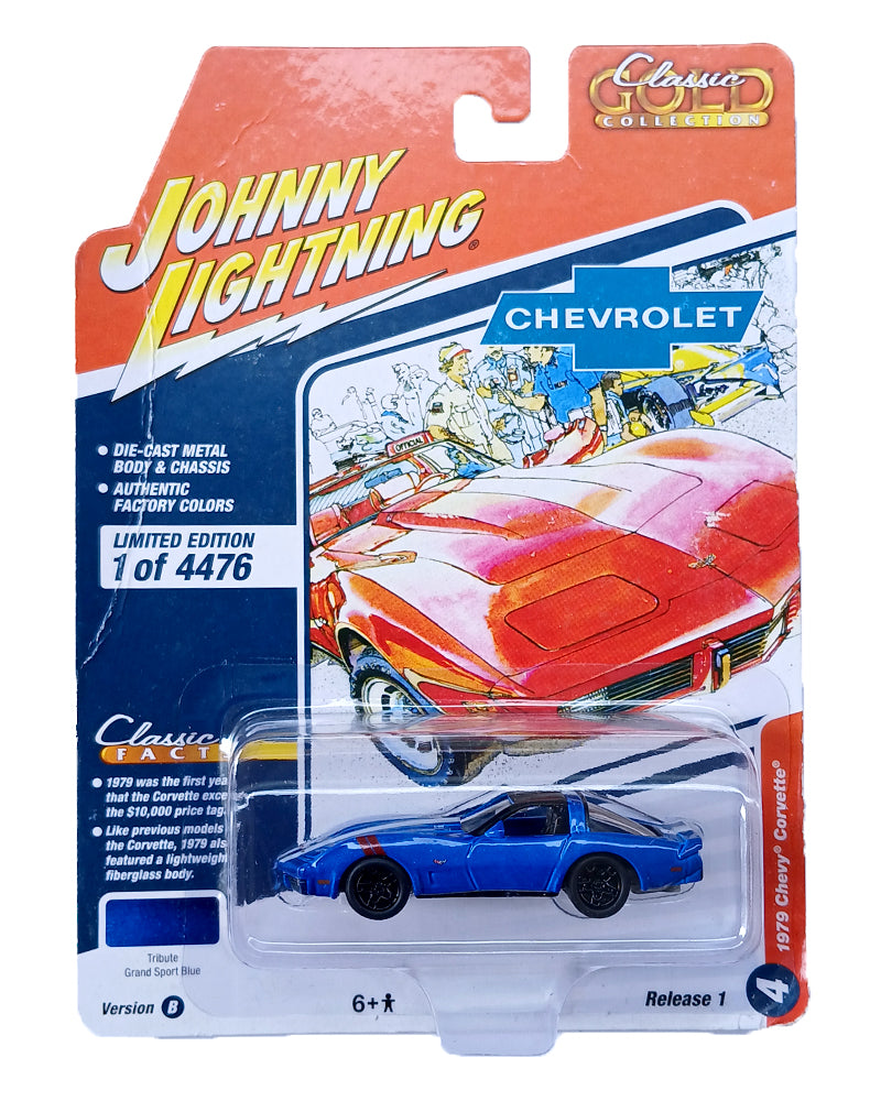 EXCLUSIVES Johnny Lightning Special Edition (1 of 4476) Classic Gold Collection 1979 Chevy Corvette - Blue (Creased Card / Car in Excellent Condition)