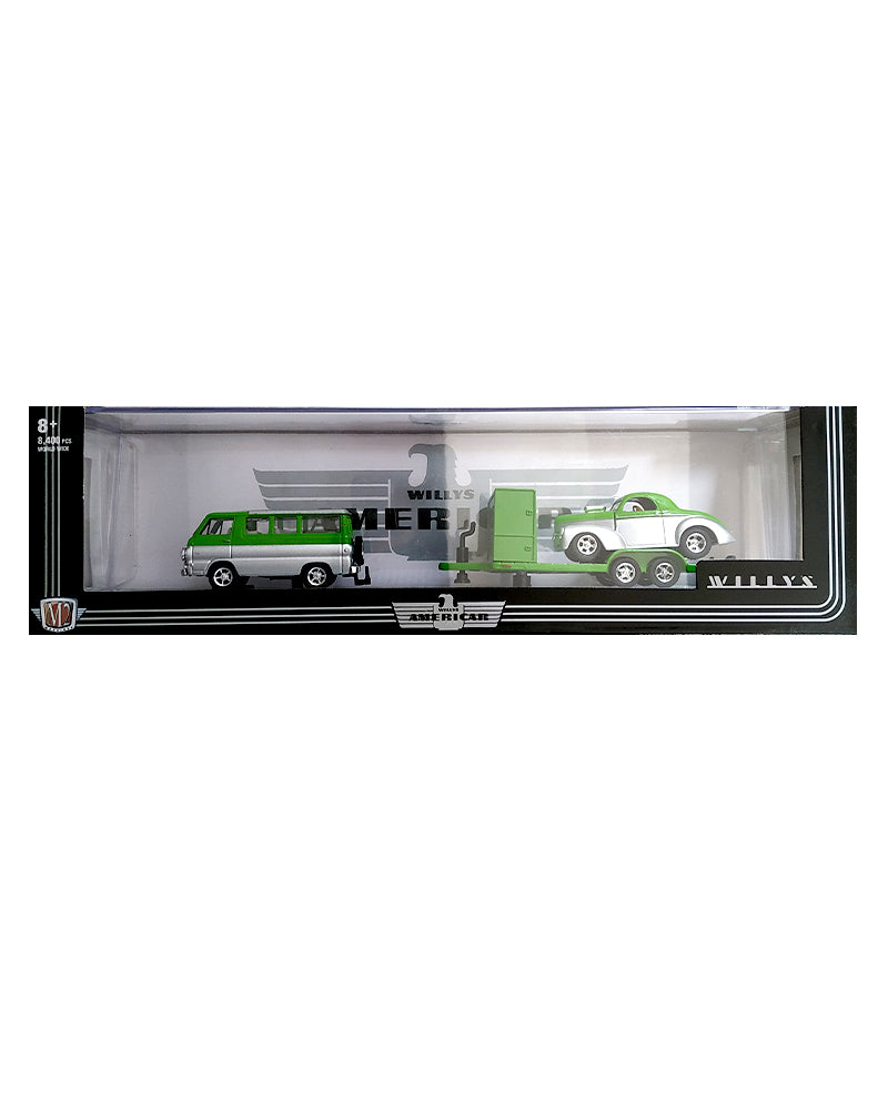 EXCLUSIVES M2 Machines Americar 1964 Dodga A100 Camper Van & 1941 Willys Coupe Gasser - Green / Silver
