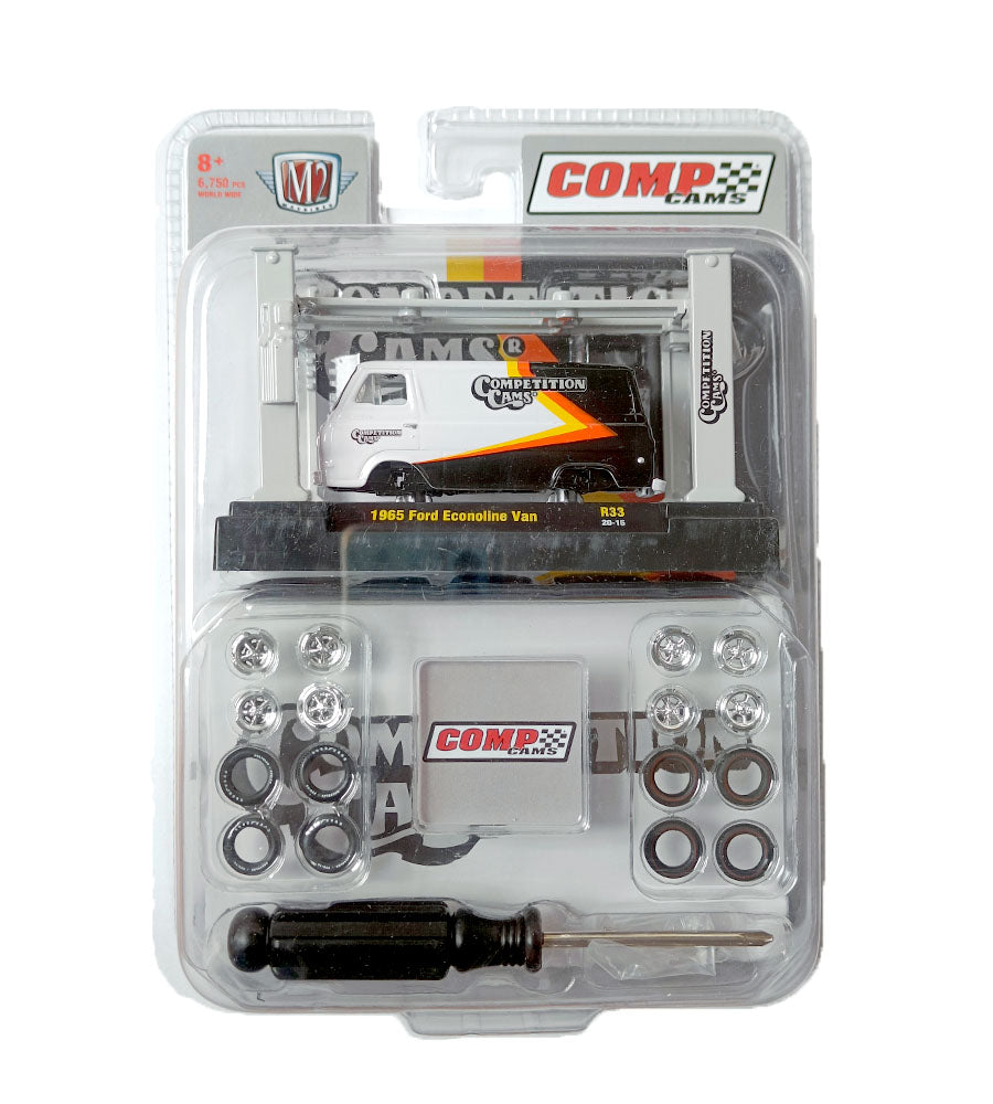 EXCLUSIVES M2 Machines Competition Cams 1965 Ford Econoline Van - White / Black (Replaceable Rims and Tires Kit)